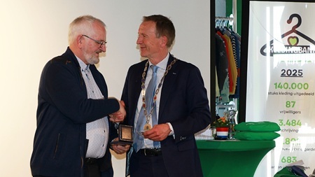 Burgemeester Erik van Heijningen reikte op 23 april 2026 de gemeentelijke erepenning uit aan Richard Brand als dank voor zijn inzet voor onze gemeente. Sinds 2018 is hij het gezicht van de Kledingbank Groene Hart.